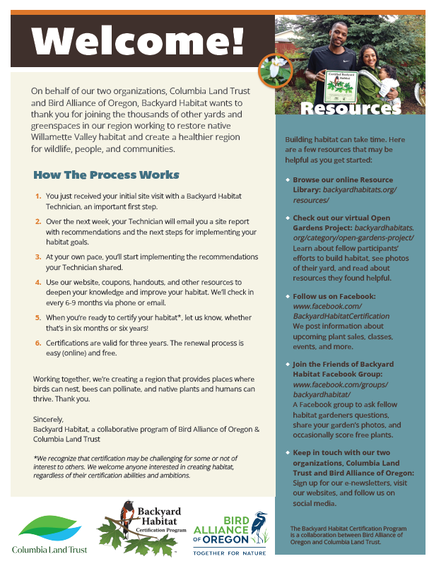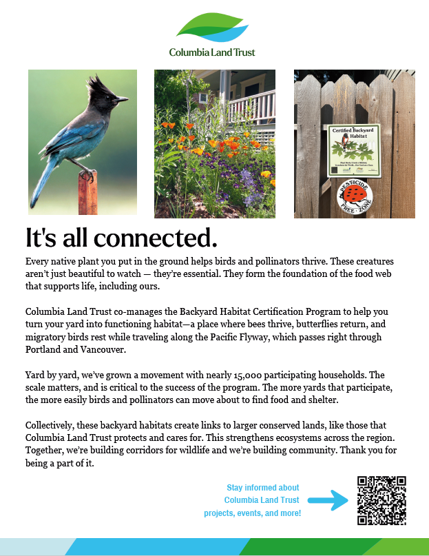 On behalf of our two organizations, Columbia Land Trust and Bird Alliance of Oregon, Backyard Habitat wants to thank you for joining the thousands of other yards and greenspaces in…